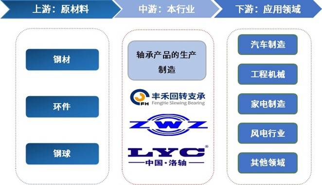 轴承行业上游企业主要包括钢材、环件、钢球等供应商,近年来,中国钢铁行业经结构调整与转型升级,淘汰落后产能,推进绿色生产和智能制造。虽面临环保压力与需求波动,钢材产量仍保持较高水平,2019年为12亿吨,2020年逆势增长,2024年接近14亿吨,总体呈增长态势,供给充足。下游广泛应用于汽车制造、工程机械、家用电器制造、风电行业等领域。